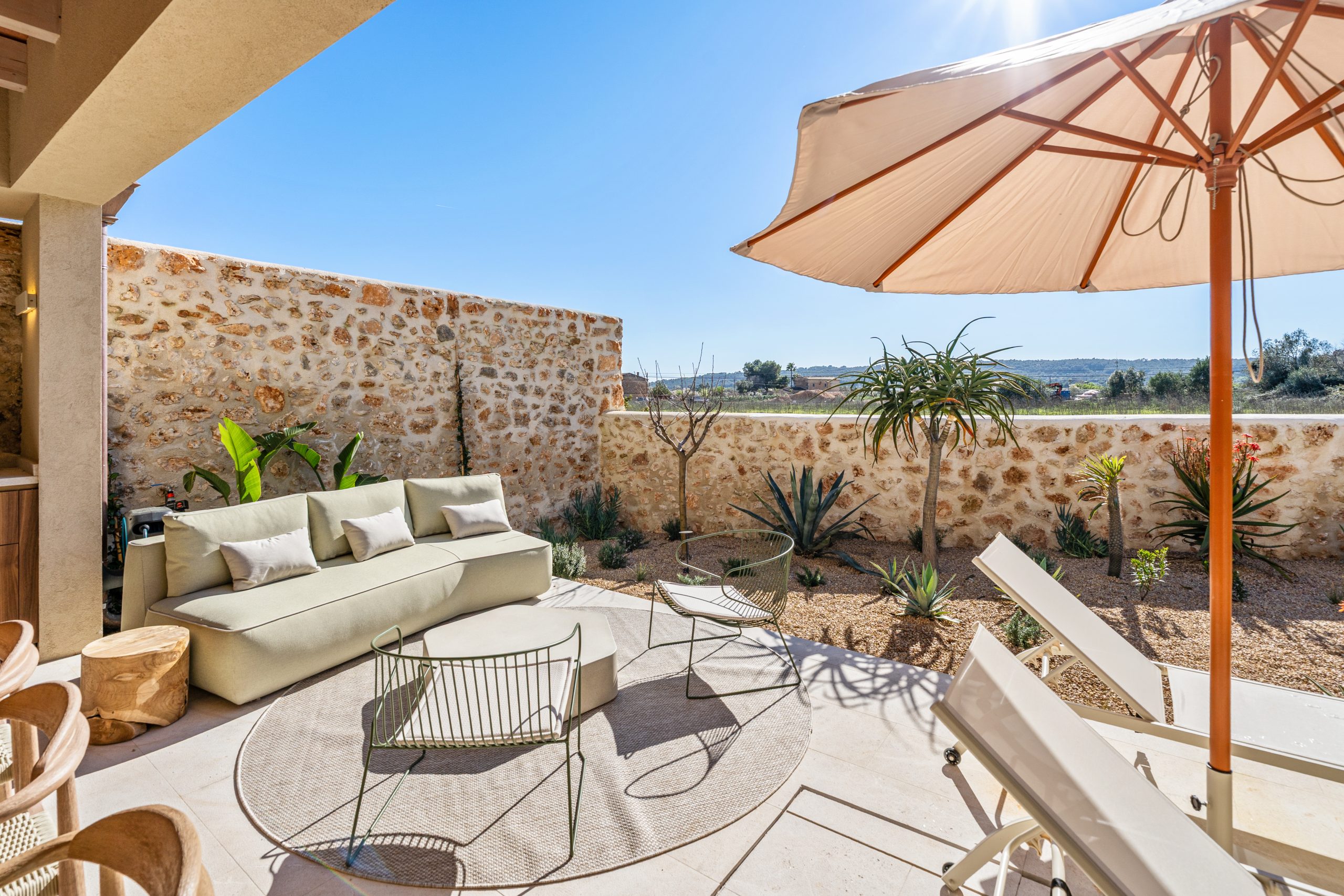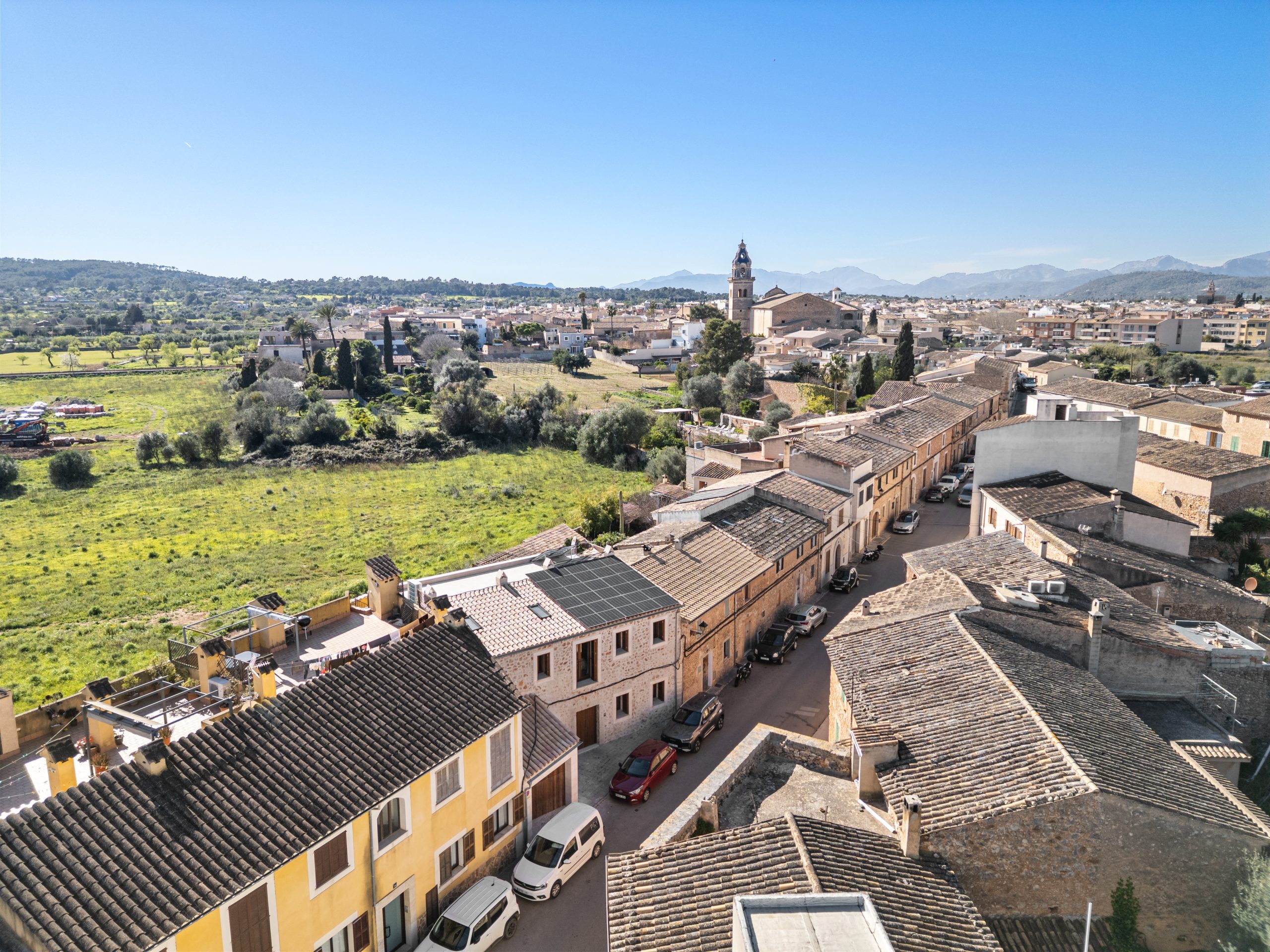 This substantial 300m2 town house is situated in the centre of Santa Maria del Cami, a short stroll to the main town square with its markets and shops, and yet with views over the garden and pool to the Tramuntana mountains. A sensitive renovation of this piece of local history will result in a superbly appointed family home, with extensive living areas, four spacious bedrooms and five bathrooms as well as its own garage. Town centre living at its best.